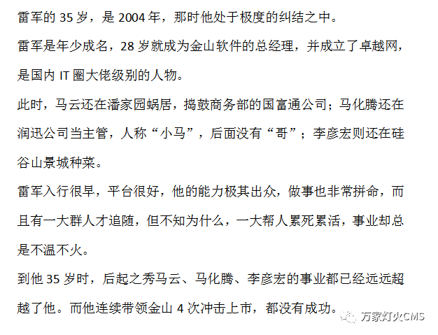 雷軍35歲雖然已經是金山總經理和卓越董事長,但是做得又累又焦慮又迷茫,直到41歲創立小米,才開始一飛沖天;